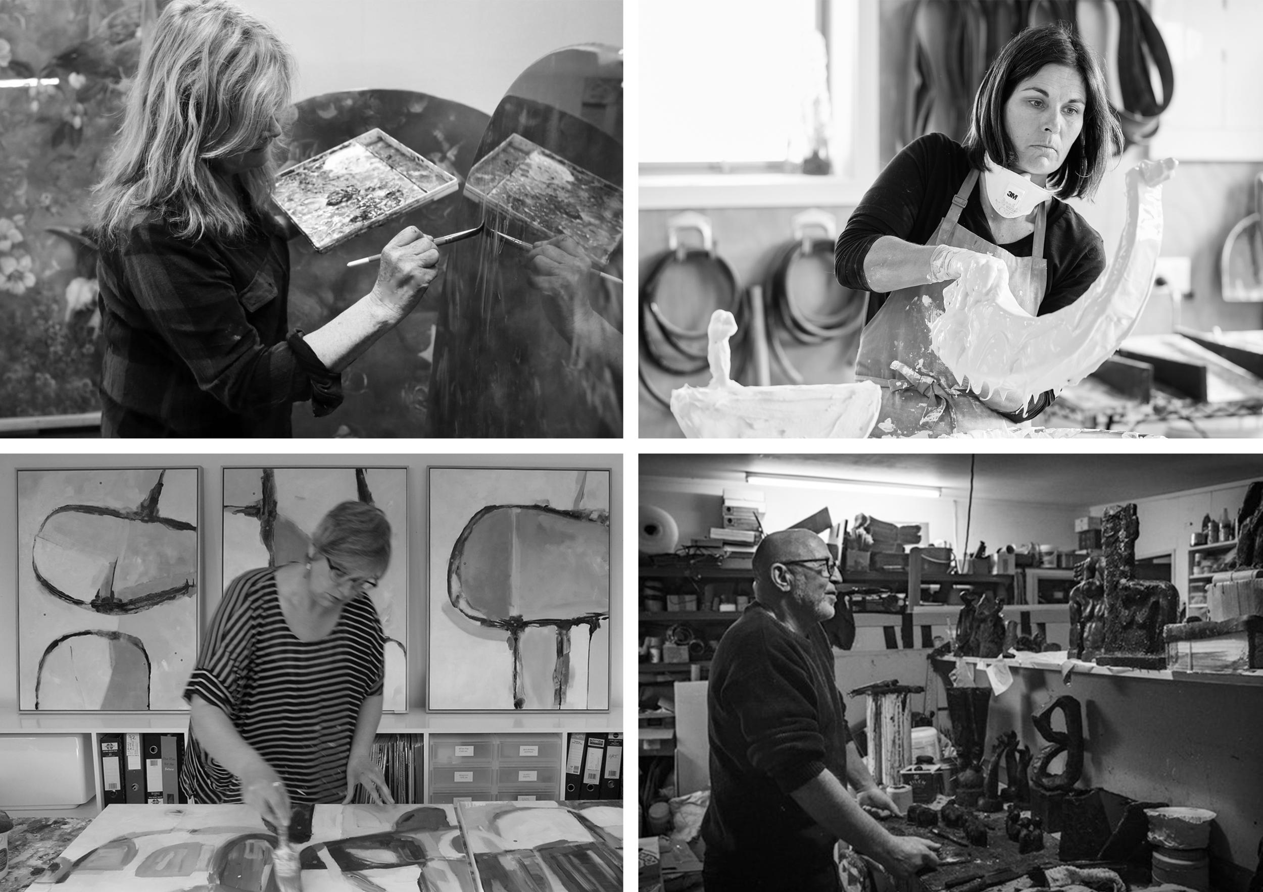Artists Janette Cervin, Di Tocker, Kirsty Black and Graeme Hitchcock working on commissions for galleries and clients.